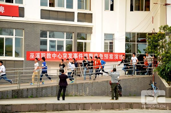 5月9日,巫溪职教中心举行了应急避险逃生疏散演练。学校安保科针对活动制定了详细的活动方案,对逃生演练路线和疏导人员做了具体的安排。演练中,同学们在3分钟内,全部安全快速地到达避难场所。